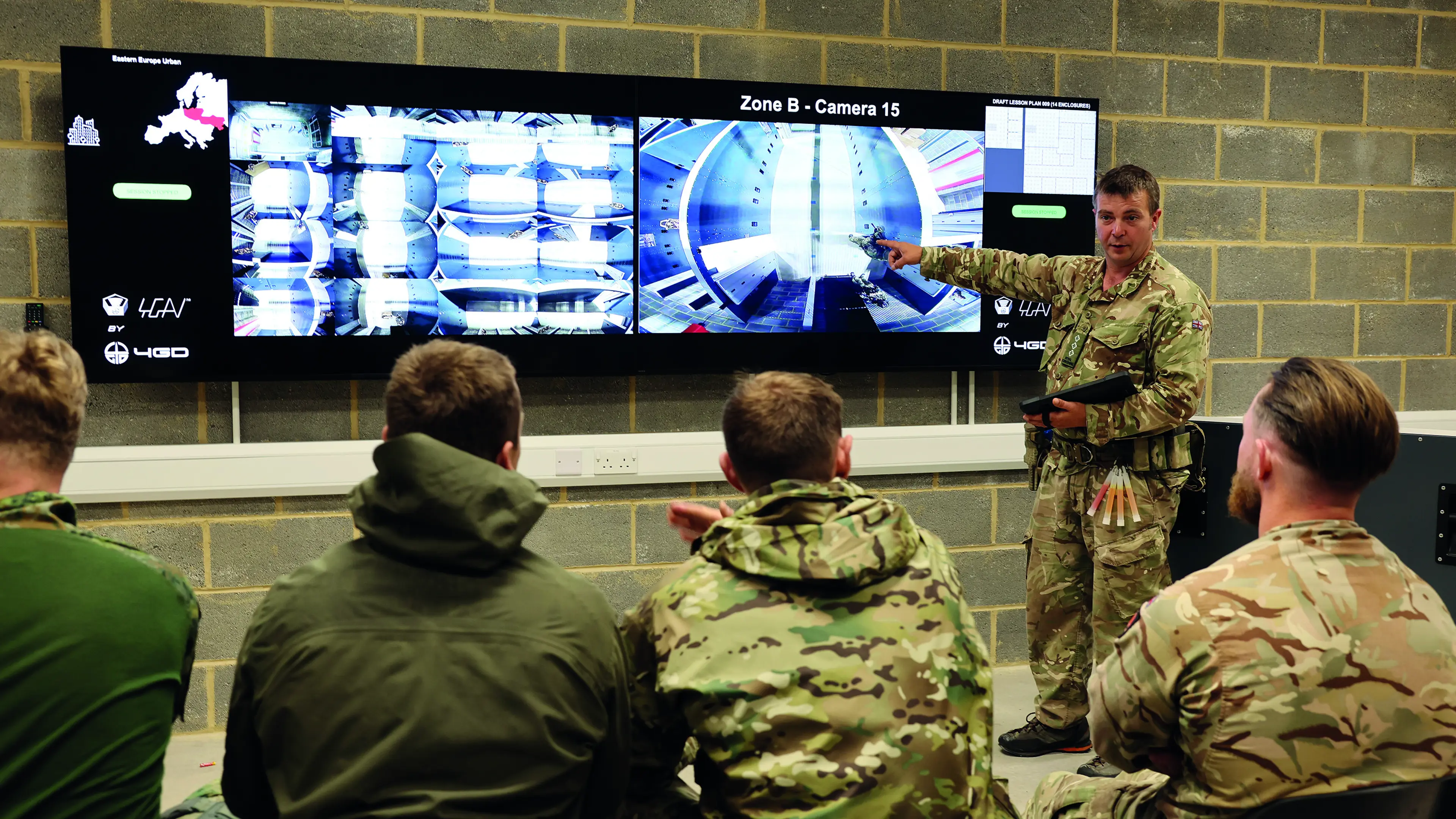 We are situated in the bowels of one of the army’s newest training facilities, located in a corner of Rollestone Camp near Larkhill. From the outside, the structure could be mistaken for a run-of-the-mill storage depot but the interior is anything but humdrum. Built in collaboration with industry partner 4GD under the army’s collective training transformation programme, it contains a labyrinth of walls, windows and stairwells concealing reams of cutting-edge technology.