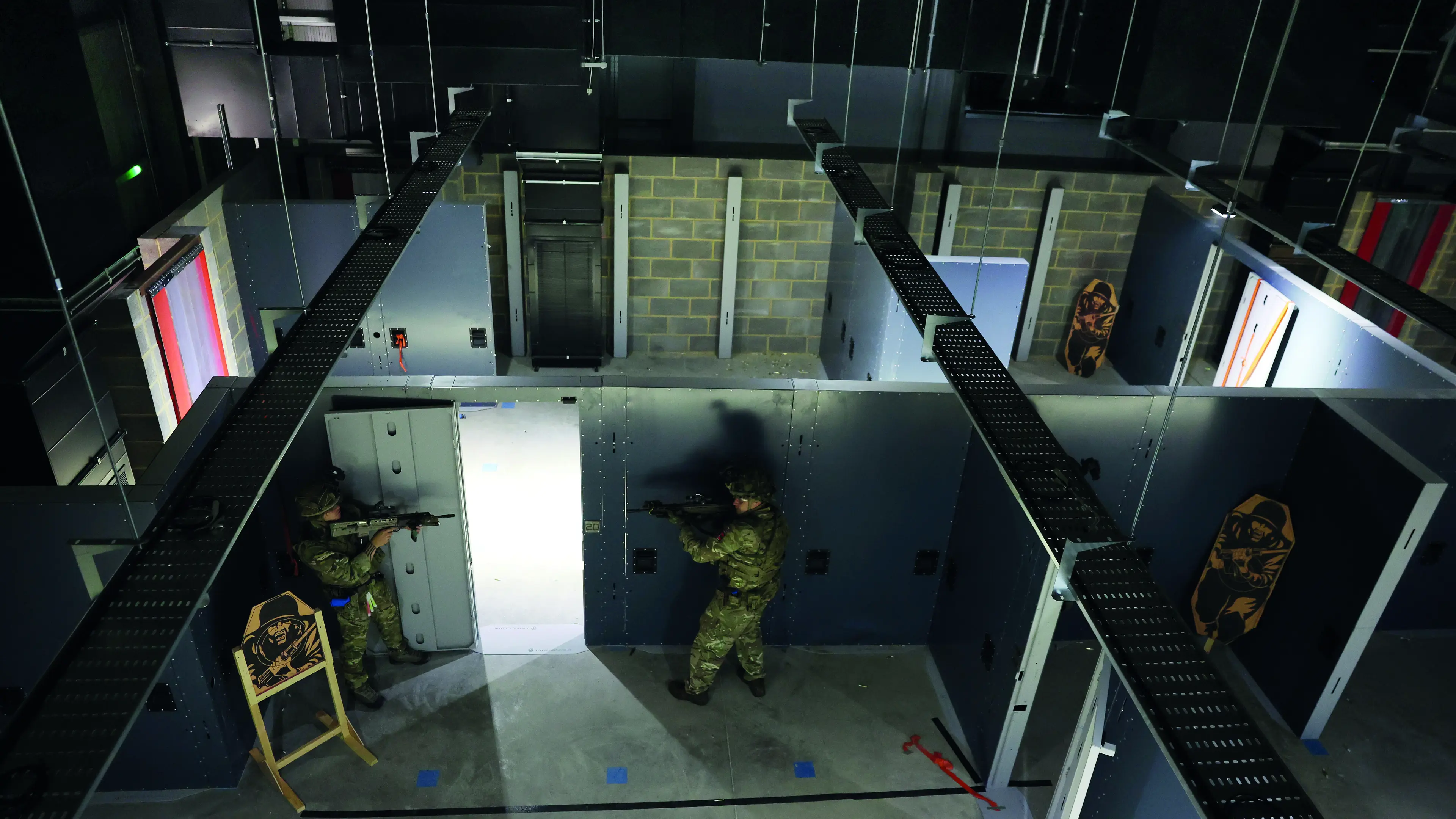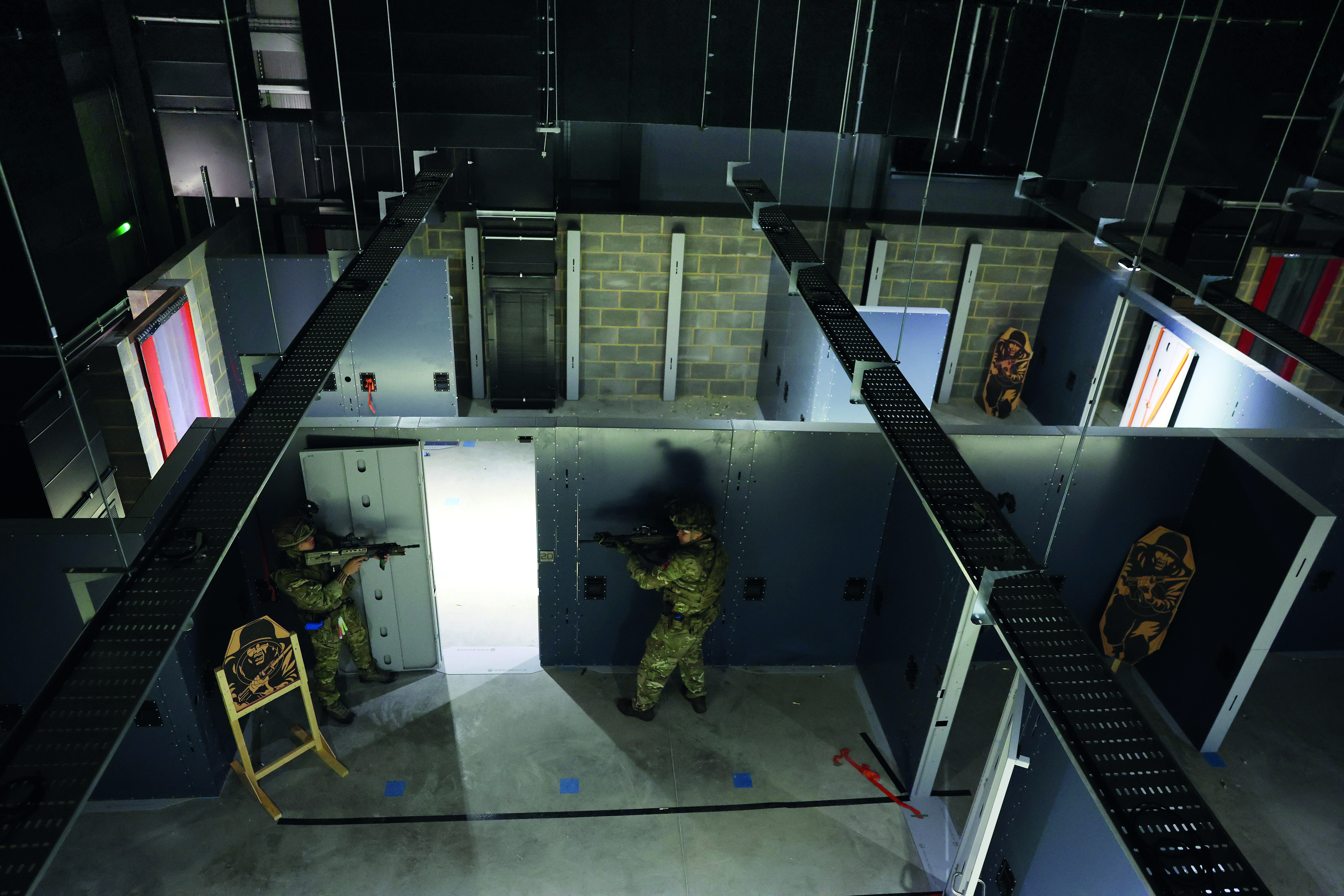 Having a flexible and technically advanced facility at their disposal has improved the training experience too, says the senior NCO. “If we put a low ceiling over this area it becomes subterranean; if we put in shop windows it becomes a high street; or if we make the corridors zigzag we have a trench environment. We can even insert lots of doorways to imitate a hotel complex,” CSgt Dillon adds.