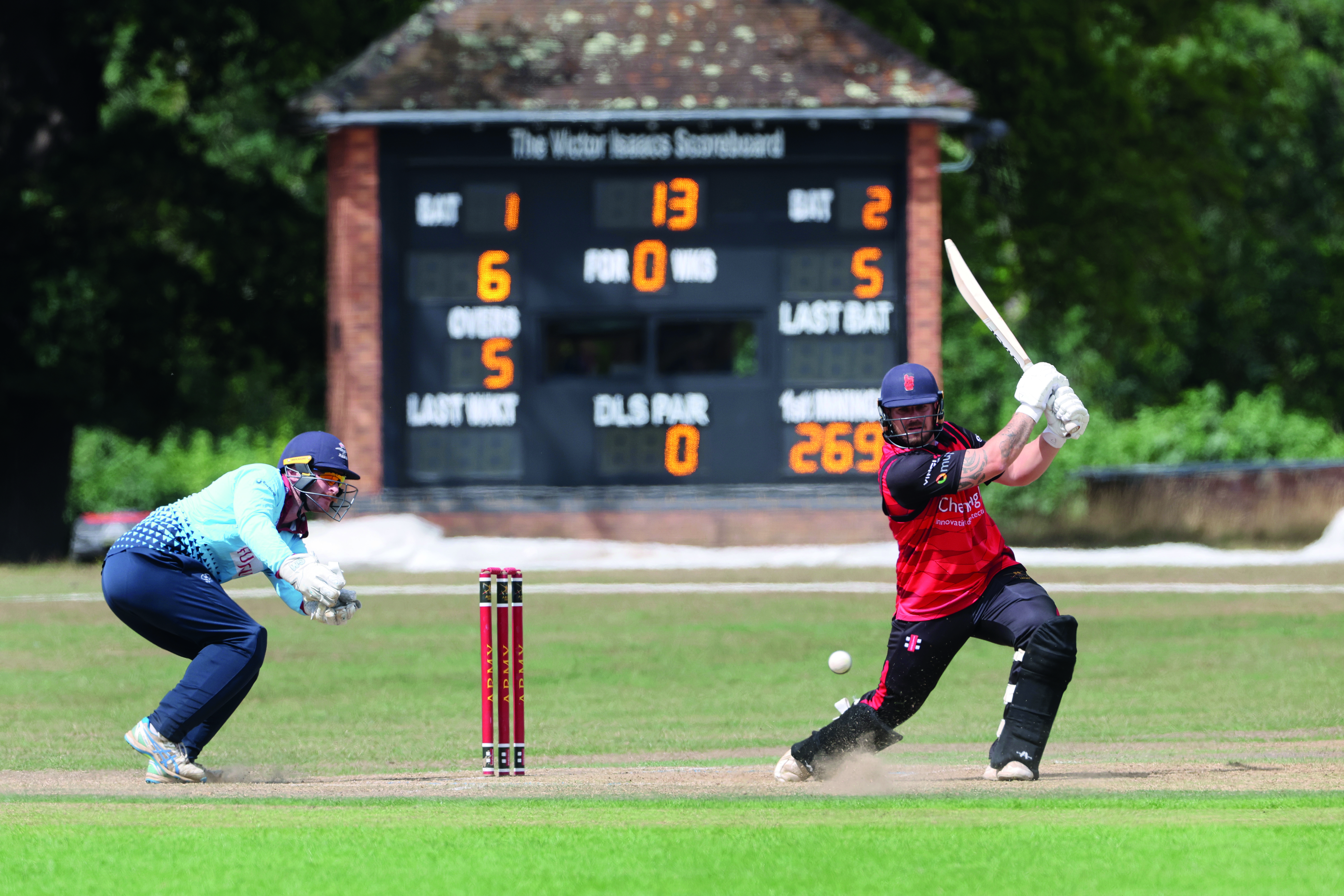 The army’s lower order did their best to close the gap and after smashing a booming six straight down the ground, LBdr Jake Benson (RA) gave them an outside chance of victory in the last over of the day.